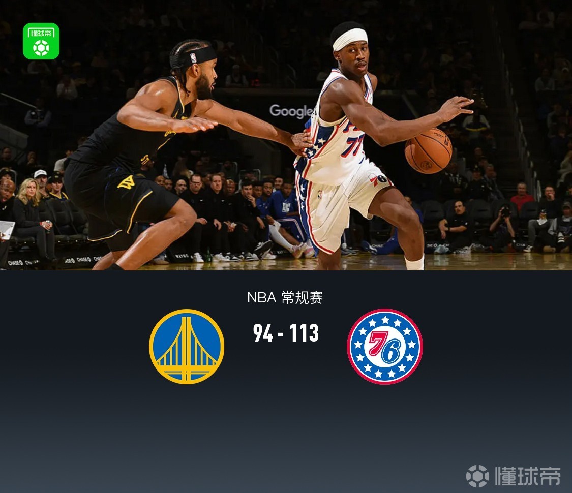 • 76人八人上双113-94勇士,埃奇库姆25+7+7,库里、恩比德均缺阵